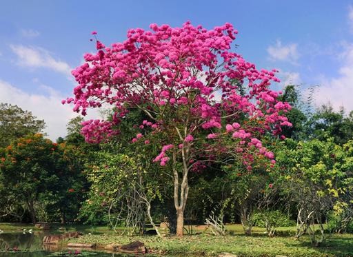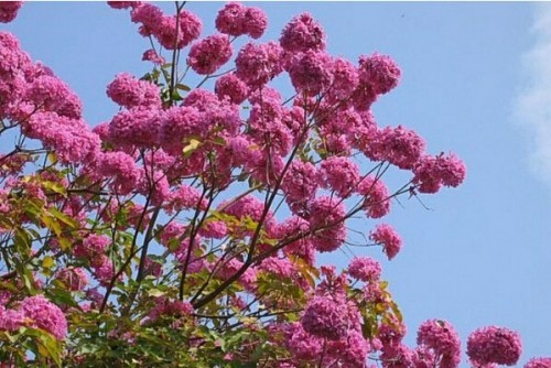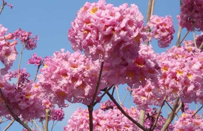 红花风铃木成株秋末至春季花芽分化,忌修剪,以免影响开花。等花期过后进行修剪整枝,促使侧枝分生,多开花。