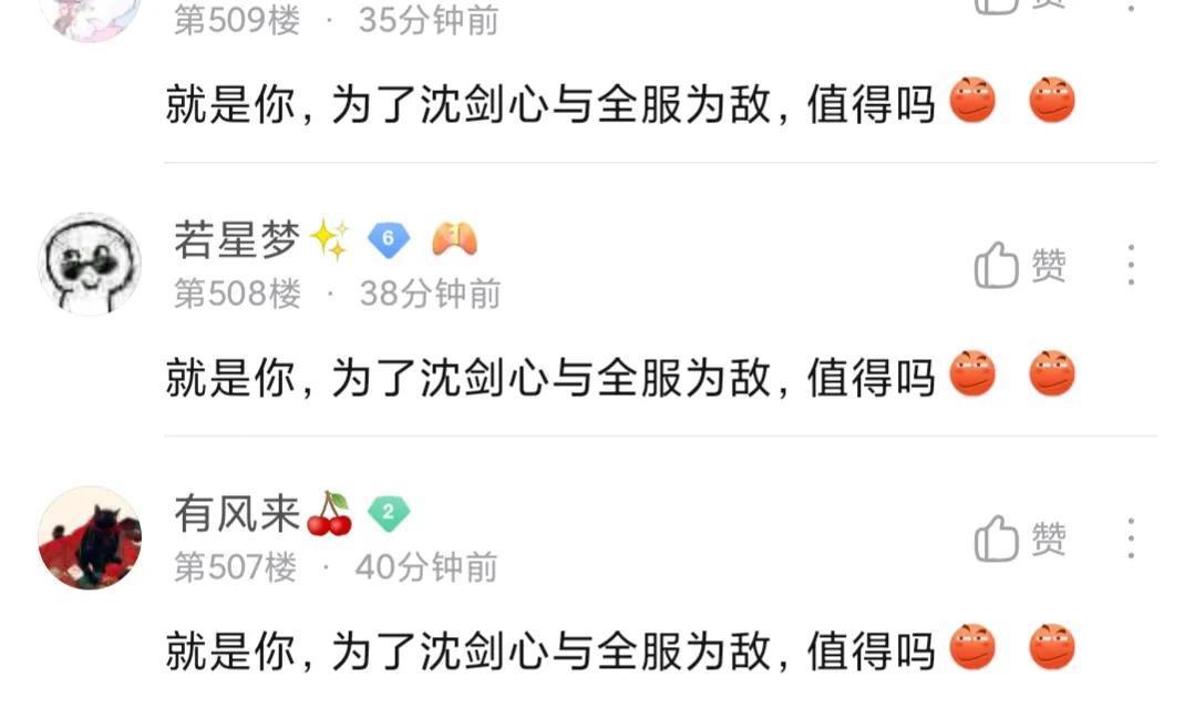 为了沈剑心与全服为敌,值得吗?他只是一个对叶英图谋不轨的渣男而已啊!