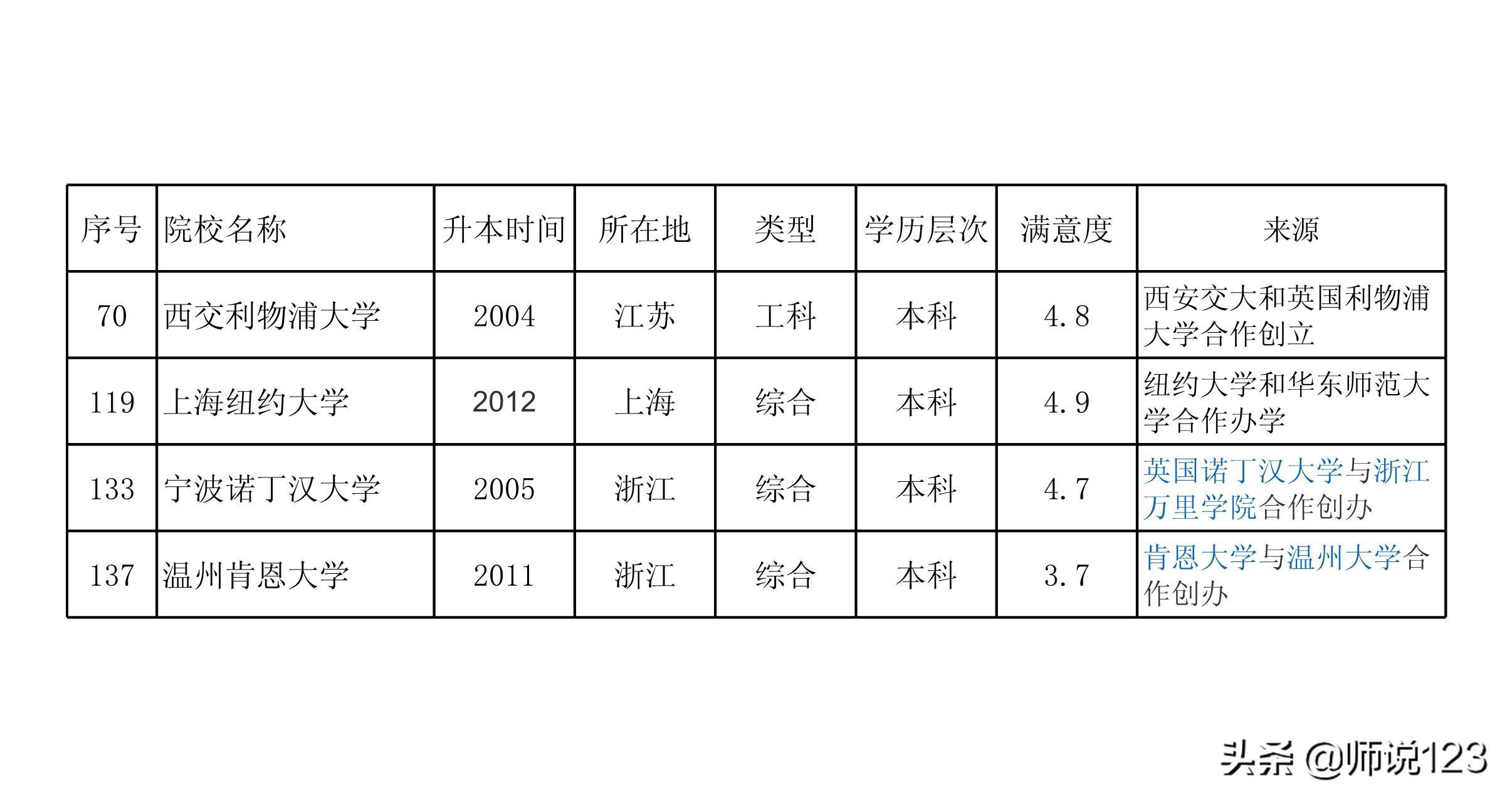 3、国内名牌大学与国外私立大学,中外合作办学的本科院校,比如下表