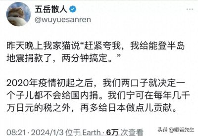- 初代公知五岳散人给日本捐款,摇尾乞怜求夸奖,顺便再踩一脚祖国