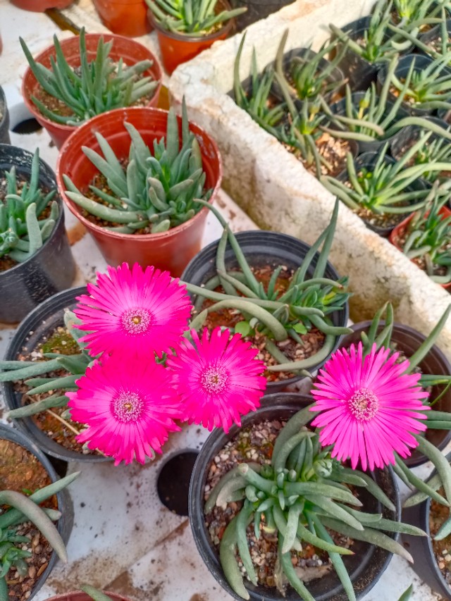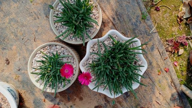 记得还是前年冬天引进一些多肉品种,其中就有奔龙。按老规矩先修根、晾根、上盆,随意放在一处,一个月左右的时间过去了,无意中看到先前上盆的奔龙有少部分几盆冒了两朵花出来,看它开的花非常神似一朵小菊花,而且颜色靓丽,比一般的多肉开的花要大,可以与多肉家族中的仙人球类开的花媲美!