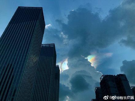 @新浪广西:南宁爆料【南宁又现七彩祥云!这是什么样的神仙天空!】快抬头,今天(7月1日)南宁的天空中再次惊现七彩祥云,转发点赞南宁又现七彩祥云吸欧气,好运滚滚来! 太爱南宁了吧~