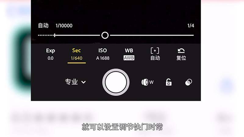 3、进入专业模式后,就可以设置调节快门时常,感光度,白平衡等相关参数了。