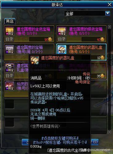 要想拿完(薇泽达)商店里所有遗忘国度的古代金币兑换的奖励,可不是一两天的事。每日只能刷到7个古代金币,活动嘛,就是要留你坚持每日一刷。这个活动时间结束为4月4号,三个多月时间反正奖励也跑不掉,慢慢存吧。遗忘国度的古代金币可以兑换的奖励也是蛮不错的,最一般的就是遗忘度过的宝箱系列了:7个古代金币兑换一个遗忘国度的宝箱(随机获得一个稀有级别的守护珠),40个古代金币兑换一个遗忘国度的银色宝箱(自选一个神器级别的守护珠),90个古代金币兑换一个遗忘国度的金色宝箱(自选职业随机获得一个白金徽章),看到随机我都慌了!