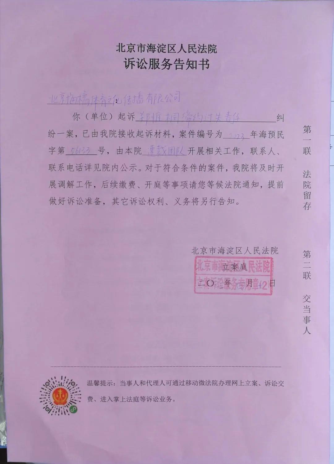 主办方只能听从法院安排。8月1日,海淀法院东升法庭通知郑郑惟桐,8月15日下午4点庭前谈话。