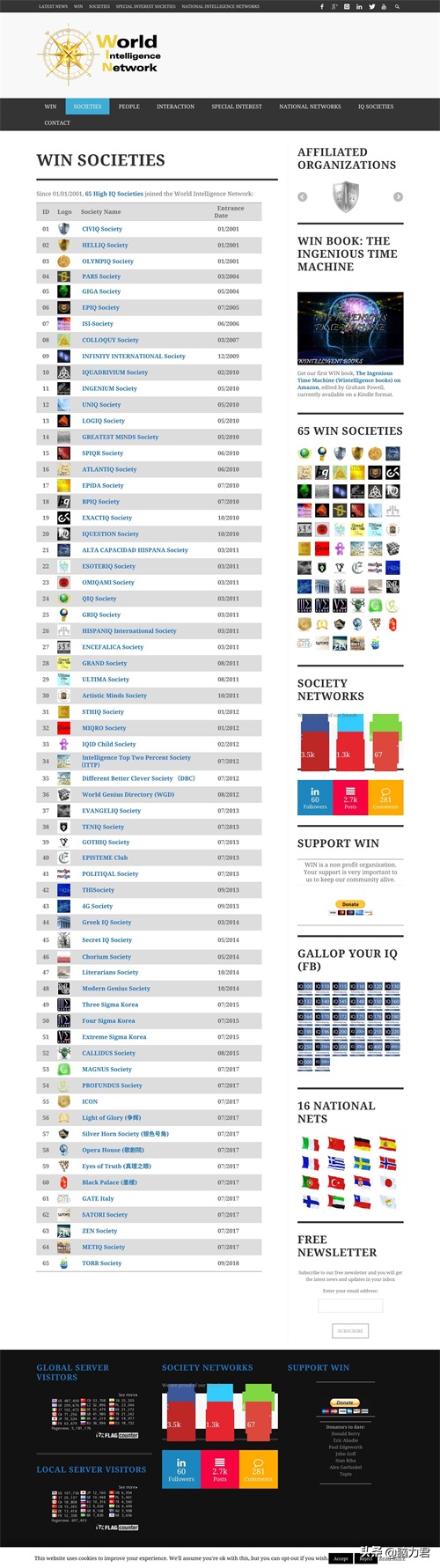 世界智联(World Intelligence Network)是世界最大的高智商俱乐部,由世界上64个高智商俱乐部合并而成。包括:OLYMPIQ Society(奥林匹克智力俱乐部)、ISI-Society、墨楼协会、HELLIQ Society (希腊之日协会)、EYES OF TRUTH协会、歌剧院高智商协会、中国高智商协会(胜寒协会)、争辉协会、银色号角协会。