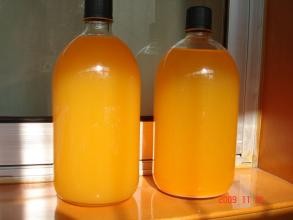 7. 发酵完成,过滤获得酒液,可以继续做二次发酵,然后静置冷却一段时间,让柑橘酒成熟,最后可以获得19L酒精度为12度的柑橘酒,封装,保存起来。