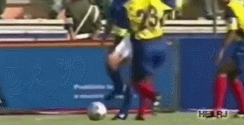从动图上可以看得很清楚,这种双脚配合的一拉一磕,罗纳尔多用自己的脚下灵活性和爆发力结合,将对方过个干干净净。可以看到的是,大罗在比赛中很喜欢用脚底踩球的技术动作,来完成一些即兴的过人。
