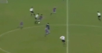 这是一粒发生在罗纳尔多效力巴萨时的进球,当时他用惊人的加速,瞬间就破开了在他身前的4名防守人,随后将皮球送入了对方的网底。