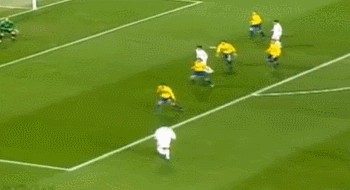 尽管说很多时候罗纳尔多的过人方式都有着朴实无华的感觉,不过你又必须承认,他在过人的时候创造力同样惊人。双脚一拉一磕,身体同时做好启动准备,大踏步上前扣过防守队员完成过人,也是罗纳尔多的一个招牌动作。