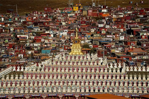亚青寺(觉姆岛)—世界上出家女性最多的地方,与色达五明佛学院齐名,不同于佛学院依山而建,亚青寺是绕河而建,岛内不允许成年男性进入,每到冬日,觉姆们会在山上或自建牢固的房顶上不足1平米小房子百日闭关,只有极少数可通过考核,获得阿秋喇嘛成就。