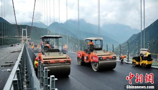 “川藏第一桥”桥面已完成半幅路面柏油铺设。
