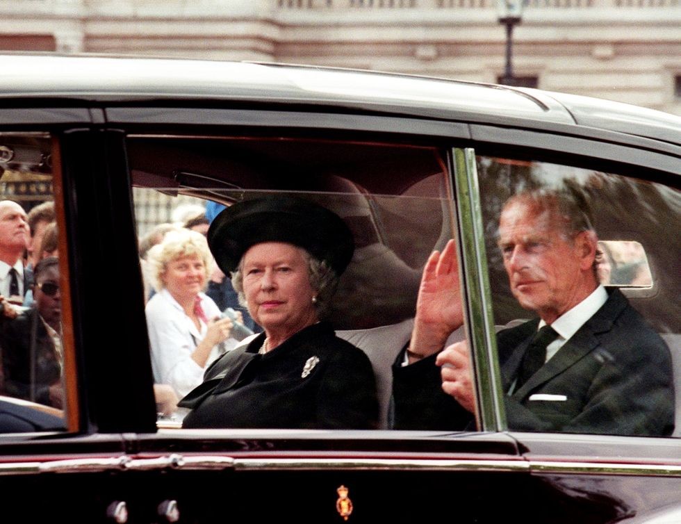 女王伊丽莎白二世和爱丁堡公爵抵达葬礼现场。