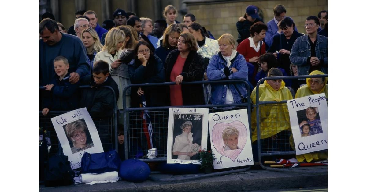 自从1981年嫁给查尔斯王子以来,戴安娜王妃就一直是英国人喜爱的人物,但很少有人能想象她在36岁去世。1997年8月31日,女王在车祸中丧生的消息传开后,哀悼者涌向肯辛顿宫和白金汉宫,留下鲜花、礼物和卡片。在这个以不苟言笑著称的国家,人们在公开场合哭泣。