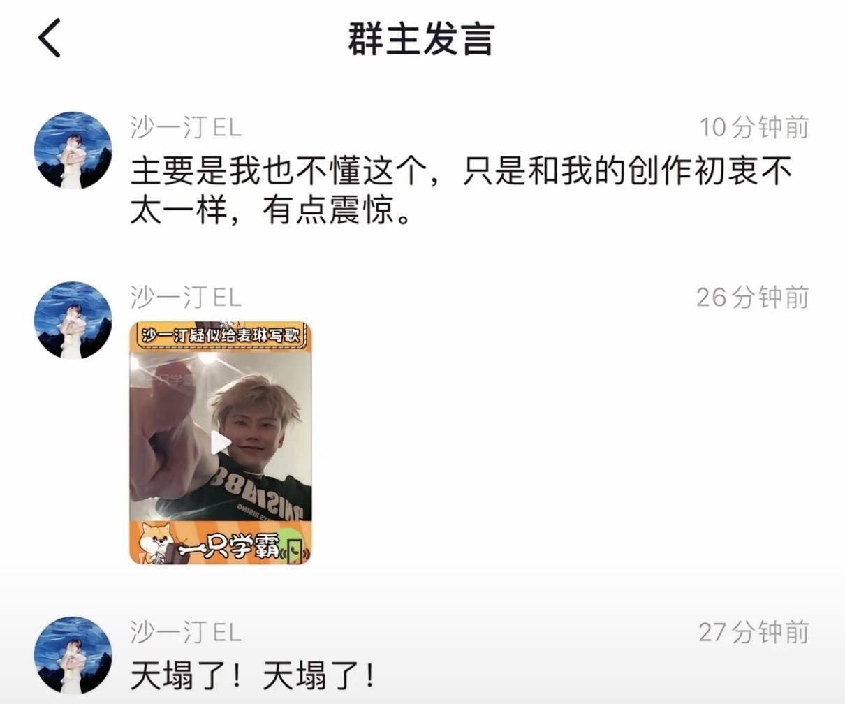 沙一汀辟谣歌曲非为麦琳所作:和我的创作初衷不太一样